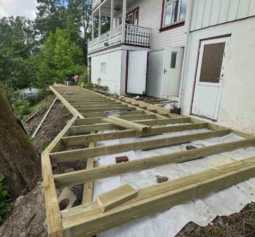 En god terrasse starter med solid forarbeid. Vi bygger terrasser på bakken, på tak og som utvidelse av huset, tilpasset tomten og ønsket uttrykk. Vi sørger for riktig fundamentering og støper søyler ved behov. Resultatet er en trygg og innbydende uteplass som tåler norsk klima og gir rom for hyggelige stunder.